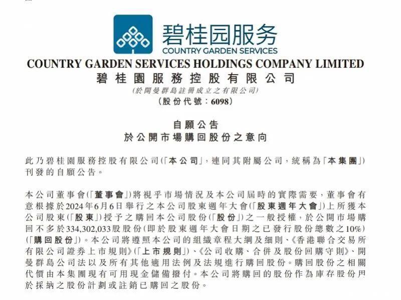 11月18日,碧桂园处事晓谕规划凭据一般授权在公开商场回购不高出3.34亿股股份。这次回购将依据2024年6月6日公司鼓励周年大会上得到的鼓励授权进行,旨在凭据商场情况及公司本色需求活泼调遣。该回购规划触及的股份数量不高出鼓励周年大会当日已刊行股份总额的10%。购回股份联系代价由集团现存可用现款储备拨付。公司将购回的股份看成库存股份用于接管股份规划或刊出已购回股份。