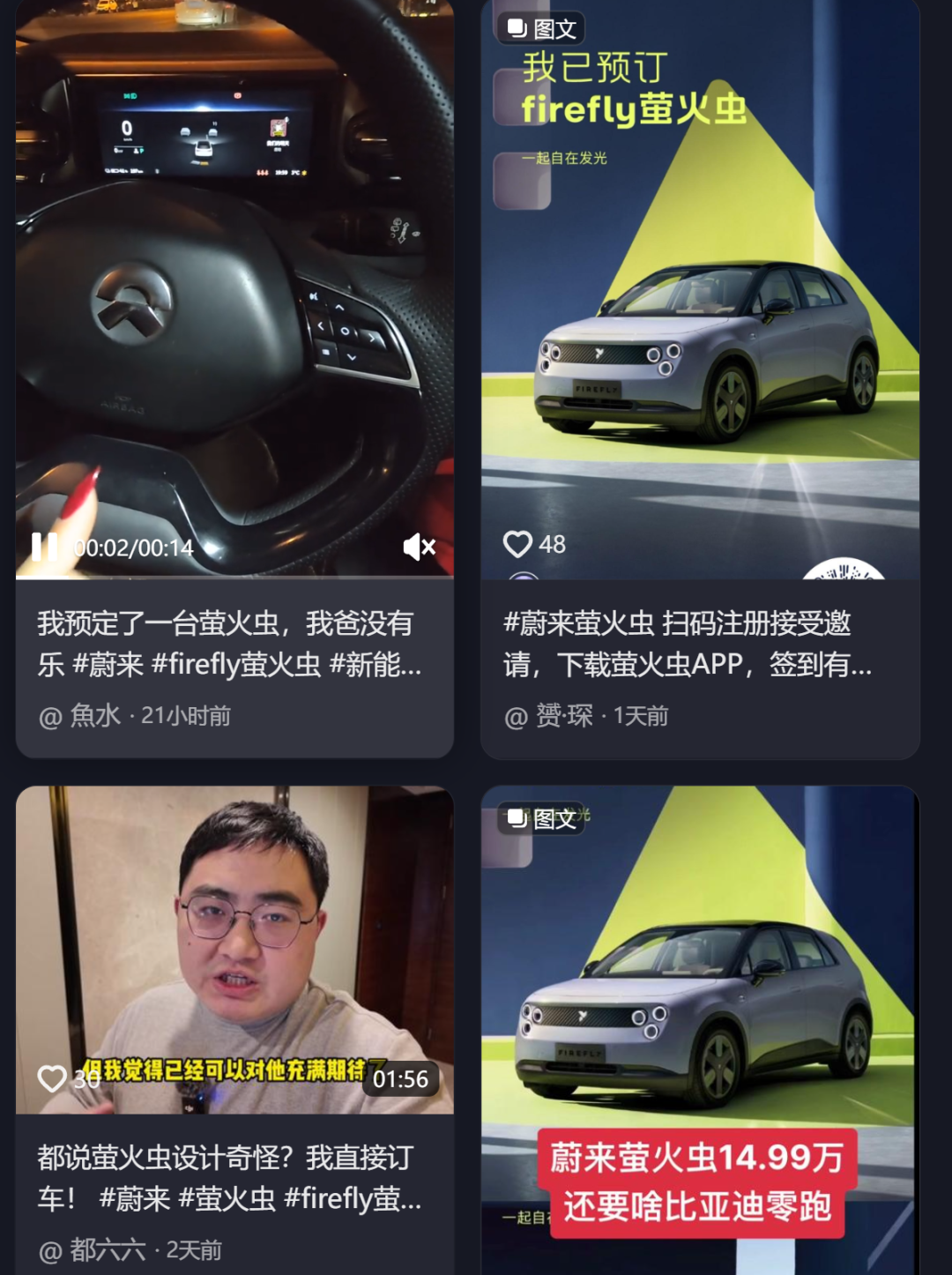 天然蔚来我方对萤火虫的定位是“杰作小车”的阶梯。