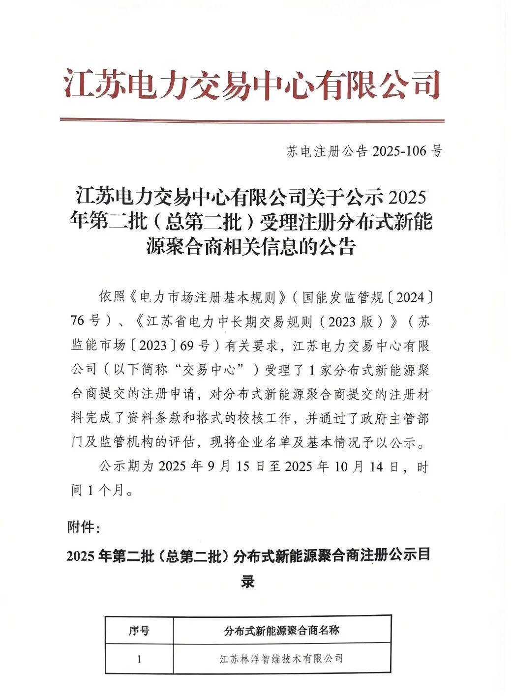 近日,江苏电力来回中心公布2025年第二批溜达式新动力团聚商注册名单,江苏林洋智维时间有限公司获胜通过审核,负责获批江苏省溜达式新动力团聚商禀赋!这符号着公司负责参加溜达式动力团聚规模,具备范围化组织与经管溜达式光伏、诀别式风电等资源参与电力市集的运营才调。